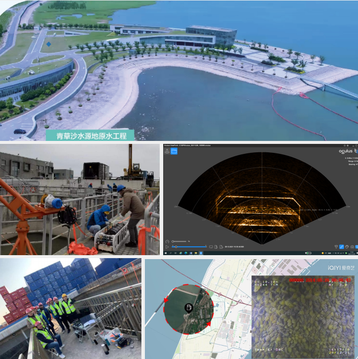 上海青草沙水源地原水工程水库至五号沟泵站输水隧洞全长约 13.8 公里,采用湟龙1号 10Km 级超长隧洞机器人进行水下检测,穿越长江的输水管道检测,单次最大检测距离为 7.2Km。