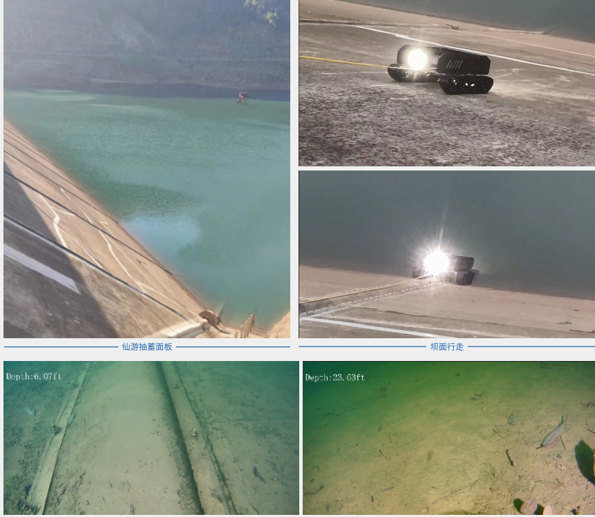 仙游抽蓄下库为面板堆石坝,采用机器人进行了面板水上和水下一体化检测,检测车采用履带式驱动结构,以保证设备能在坡面起伏较大的环境下正常工作